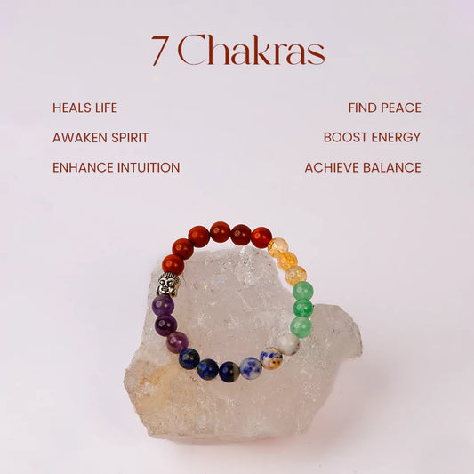 7 Chakras Stone 100% Natural 8mm Bracelet + Nepali Rudraksha Bracelet FREE