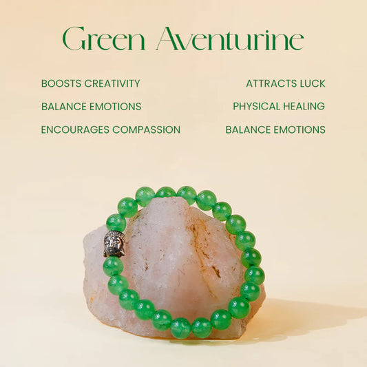 Green Aventurine 100% Natural Stone 8mm Bracelet + Nepali Rudraksha Bracelet FREE