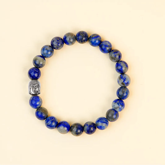 Lapis Lazuli 100% Natural Stones 8mm Bracelet + Free 5 Mukhi Nepali Rudraksha